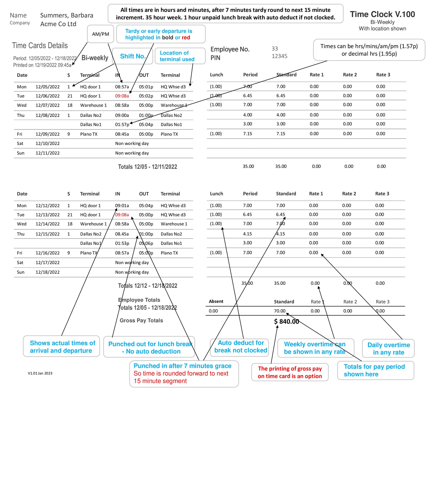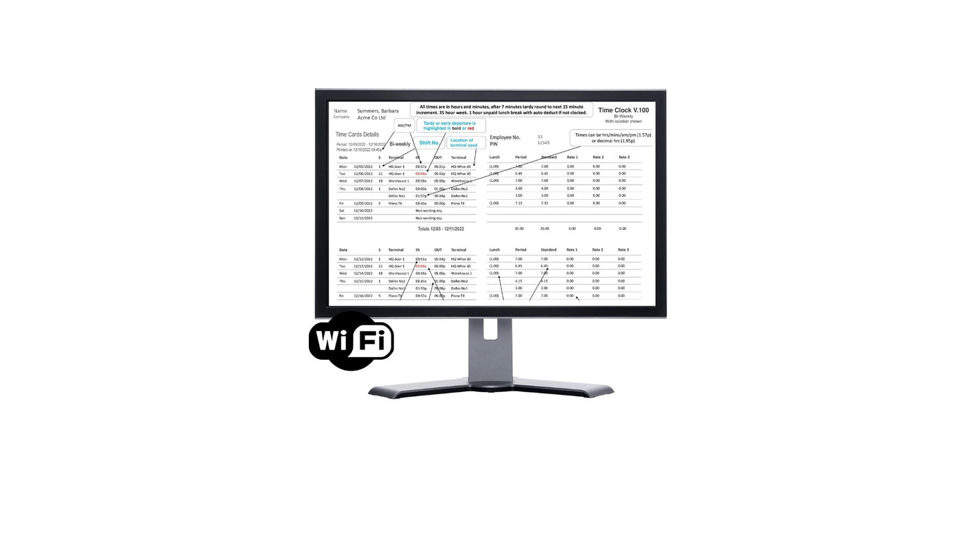 Most importantly - if any employee forgets to clock the system keeps on operating as normal. Reports still work. It just prints on the time card that the employee missed a punches.